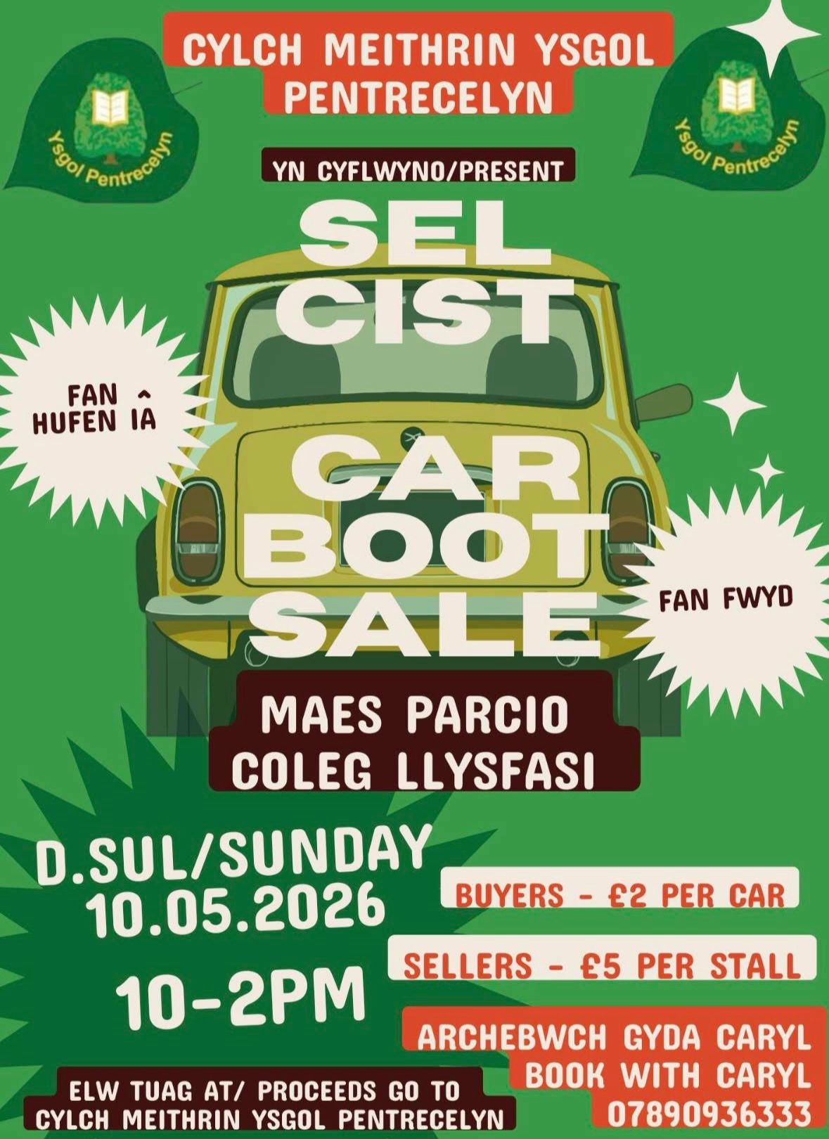 Contact Caryl for a Table at our first ever car boot sale. 07890936333